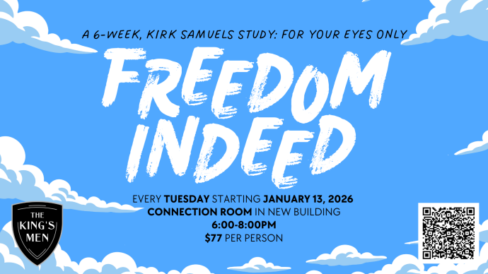 King's Men "Freedom Indeed" A 6-week study, Kirk Samuels, For Your Eyes Only Every Tuesday Starting January 13, 2026 Connection Room in New...